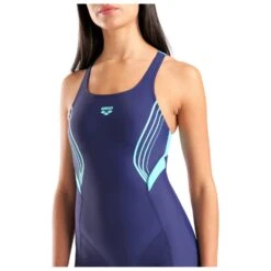 Sportlich und performancestark zeigt sich der Women’s Kaori Combinaison von Arena. Dieser Badeanzug mit leicht verlängertem Bein eignet sich fürs regelmäßige Schwimmtraining bestens. Durch die im Rücken gekreuzten Träger sitzt er immer sicher und die Träger rutschen selbst bei schnellen Bewegungen nicht. Das Material ist darüber hinaus besonders flexibel und legt sich perfekt an Deinen Körper an, ohne dabei Druckstellen zu hinterlassen.