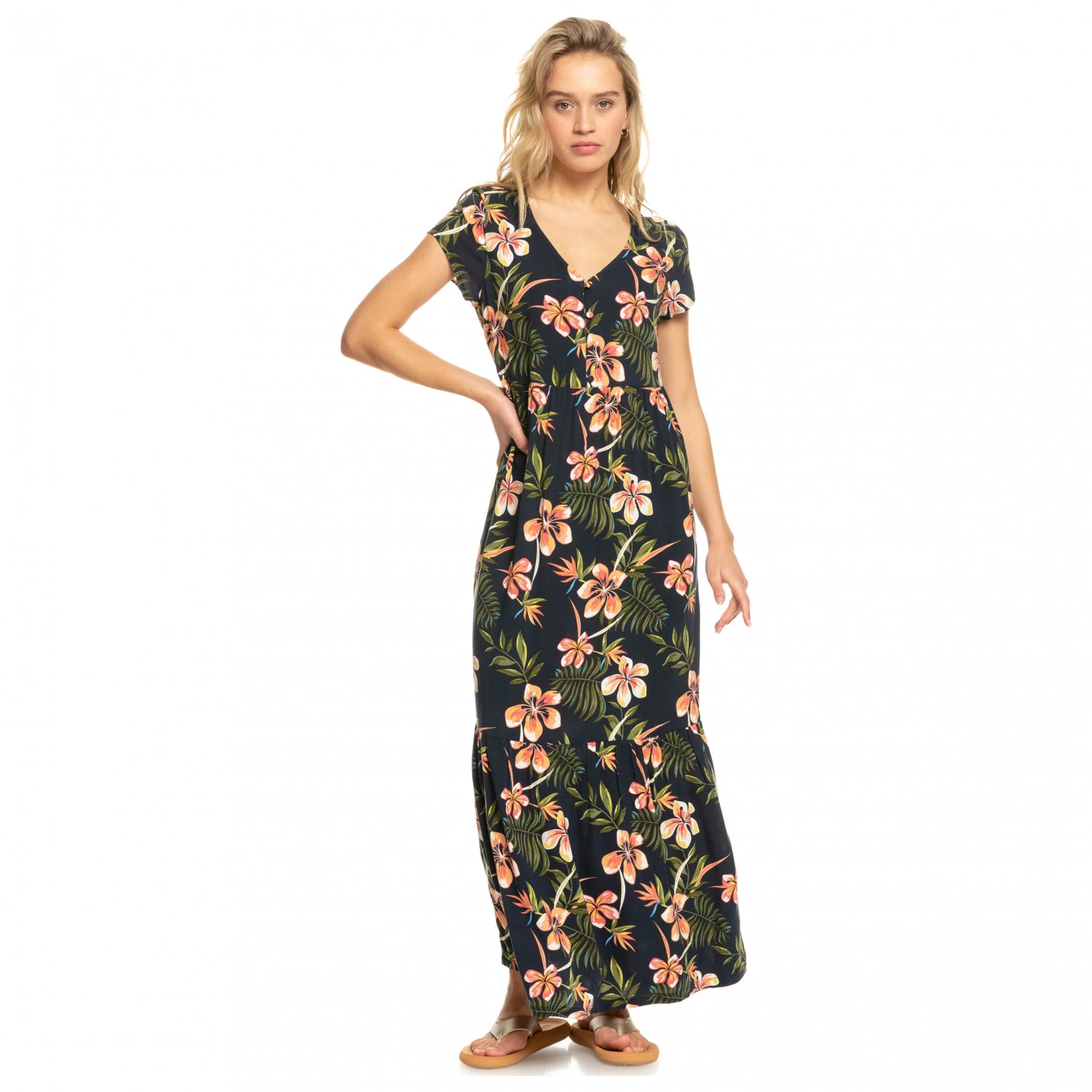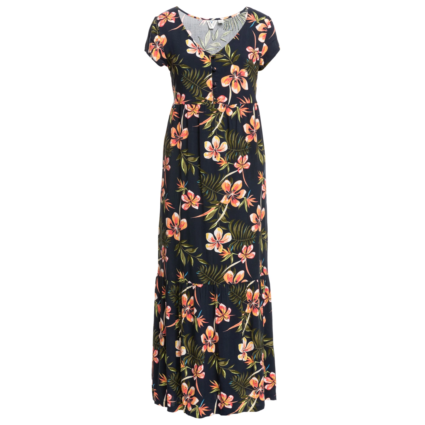 Luftig, leicht und beschwingt geht es mit dem Kleid Popular Song von Roxy durch den Alltag und die Freizeit. Der Stoff aus Viskose umspielt die weibliche Figur und trägt sich angenehm auf der Haut. Der große V-Ausschnitt und das tolle, tropische Blumenmuster machen das lange Kleid zum echten Hingucker!